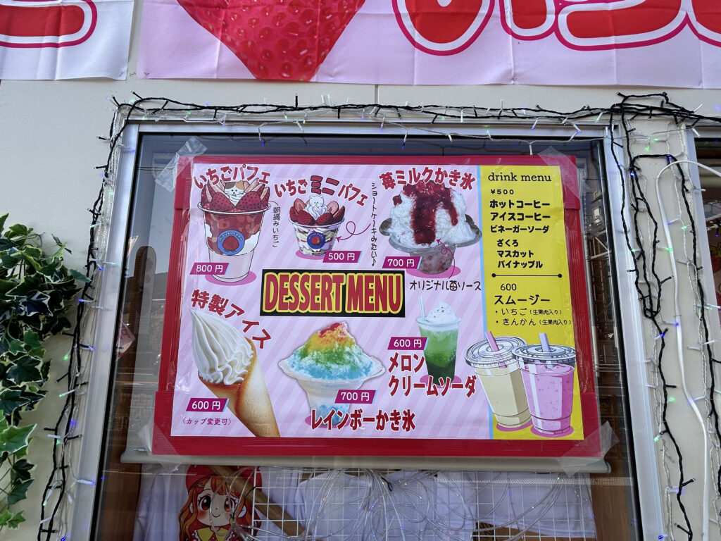 完熟!朝摘み!いちご!の文字。とにかく入る前からの商品アピールがすごいです( ◜▿◝ )