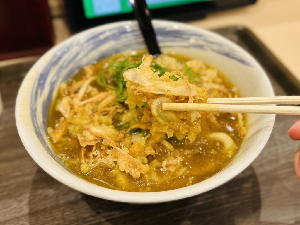 中の人は、北方時代から好きなカレーごぼう天うどんにしました( ◜▿◝ )