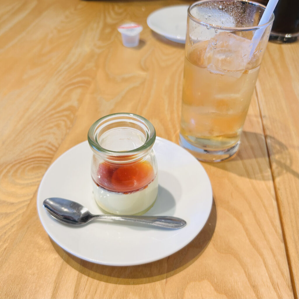 メインを食べ終わると絶妙なタイミングで、ドリンクと自家製プリンが到着♪