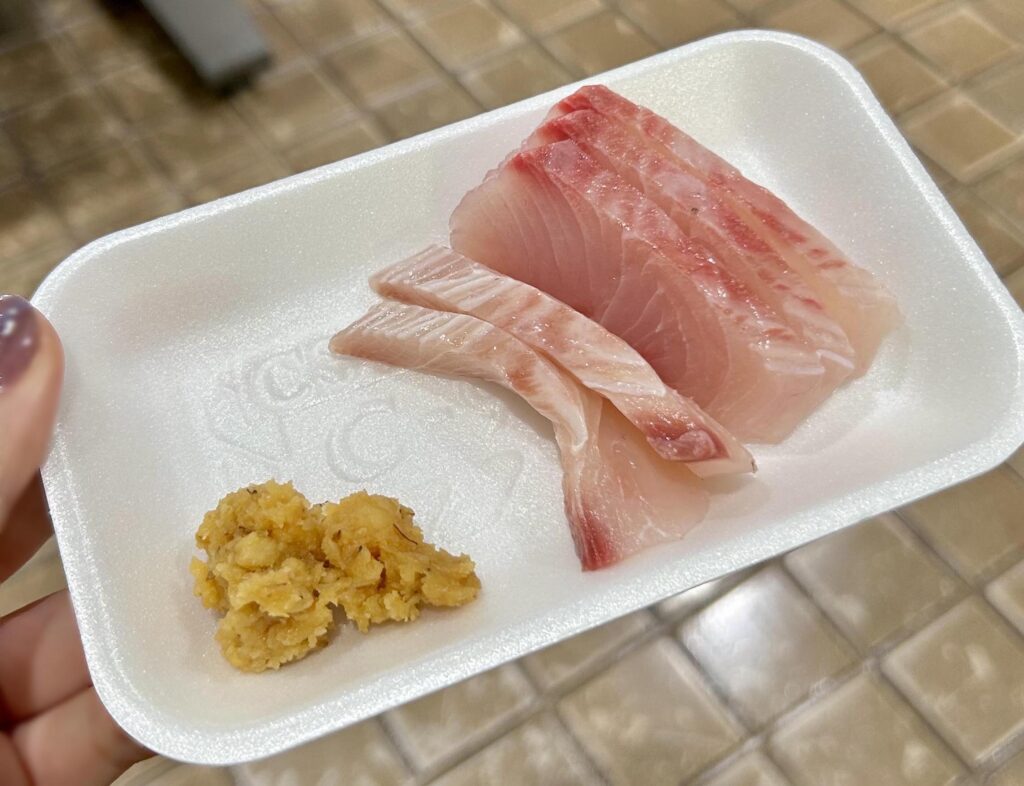 シイラの解体ショーが行われており、平戸で水揚げされたシイラの刺身を堪能(º﹃º )
