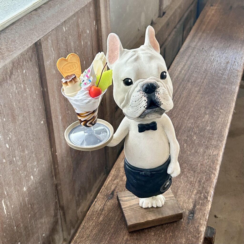 ブルドッグのウェイターさんのお盆に載せて写真を撮ることができたので、記念に1枚。