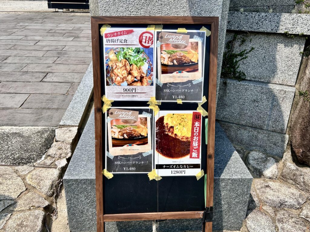 そして提灯のすぐ下にはランチメニューの立て看板がありました。
