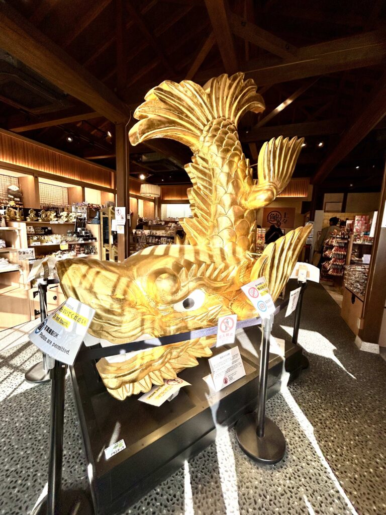 とあるお土産屋さんの中に、名古屋城の上に乗っているものと同サイズの金のシャチホコのオブジェがあったので撮影!