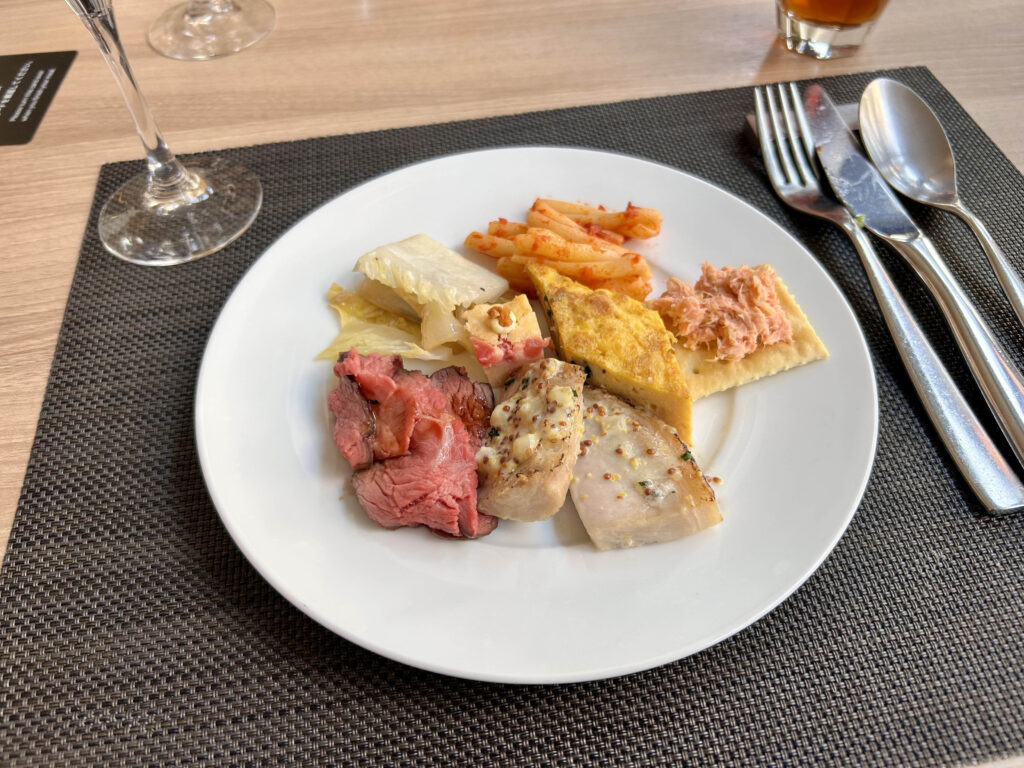 続いてホットメニューで、お肉やお魚、卵のお料理をいただき・・・