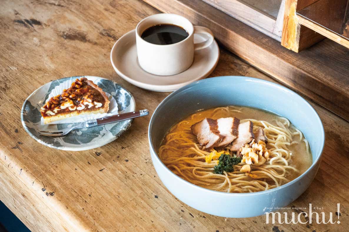 季節限定メニューも要チェック!【極み鶏しお】は、鶏ささみから旨味だけを抽出したスープに、やわらかくジューシーな東坡肉(トンポーロー)、ピリ辛カシューナッツ、ハーブオイルを合わせた贅沢な一杯。提供は2月までで、3月からは新メニューが登場予定。単品注文も可能ですが、おすすめは、選べるドリンク&デザートが付いた「クラフトヌードルセット」。自家焙煎コーヒーやラテ、ハーブティーなどドリンクと、手作りのスイーツも楽しめて、満足度も抜群です♪