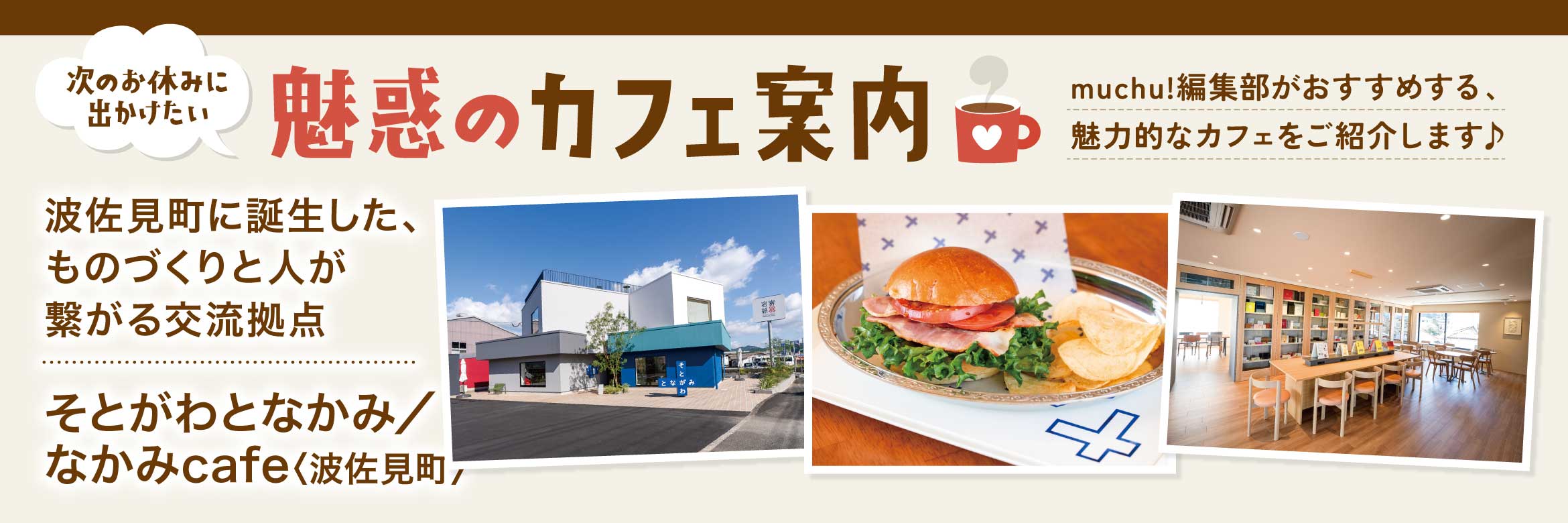 ここでぜひ立ち寄りたいのが「なかみcafe by JUNE COFFEE」。長崎市に本店を構える人気のベーカリーカフェが監修するカフェで、BOXミュージアムを併設した店内や屋上テラスで、本格的なコーヒーや食事が楽しめます。メニューにはJUNE COFFEE焙煎のオリジナルブレンド豆を使ったアメリカーノやカフェラテなどの定番に加え、そとがわとなかみのテーマカラーであるブルーをイメージしたクリームソーダなど種類も豊富。フードはBLTや照り焼き、ガーリックシュリンプの3種のハンバーガーを用意。長崎県内を中心に仕入れた食材を特製バンズでサンドしたボリュームたっぷりの一品です。ワッフルは店内で生地から焼き上げており、ベーコンエッグやツナマヨなどのお食事系に加え、チョコバナナ・塩キャラメル・レモンヨーグルトなどデザート系も充実。いずれもテイクアウト可能で、屋上テラスを利用する場合はテイクアウト容器での提供となります。