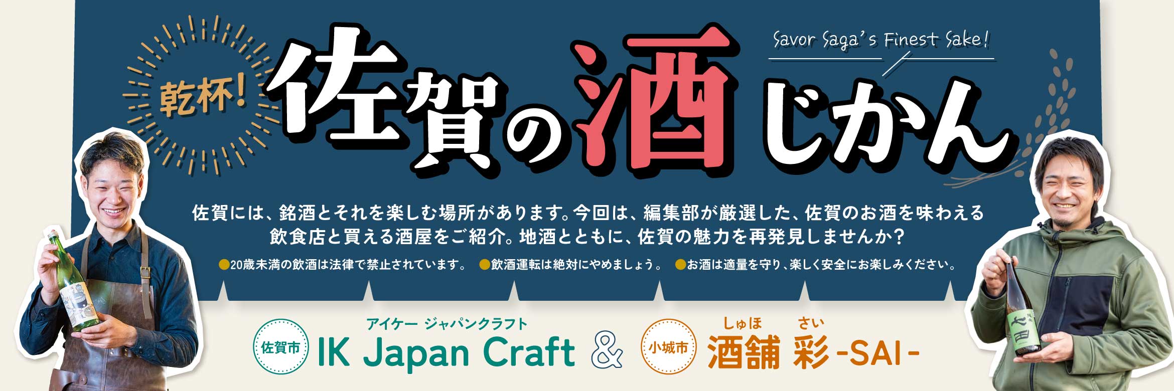 2025年9月にオープンした「IK Japan Craft」は、27歳の若きオーナー・伊東さんが、佐賀市内で4店舗を展開するIKグループの4号店として手掛けた『日本酒と和食』のお店です。内装はDIYで仕上げられ、入り口が本棚という遊び心から始まり、扉を開けると広々とした温かみのある空間が広がります。壁には佐賀の24酒蔵を網羅した手描きMAP、手作りの「日本酒セラー」には佐賀を中心に全国の銘酒が並びます。料理はペアリングを重視し、備長炭で焼く佐賀牛や塩で味わう刺身、締めの土鍋ご飯まで、どれも日本酒との相性抜群!近年「ノンアル・低アル」がブームで、日本酒の消費量は最盛期の1/4までに減少。しかし、蔵人として働いた経験を持つ伊東さんは、造り手の魂を伝えたいという強い思いから、日本酒を楽しく飲み、知り、体験できる場をつくり続けています。普段お酒を飲まない方にも楽しんでもらえるよう、ノンアルの「日本酒サングリア」なども揃えています。『お酒は温度で味も変わり、料理との組み合わせも無限』と語る伊東さん。新しい日本酒の魅力を発見できるお店です。